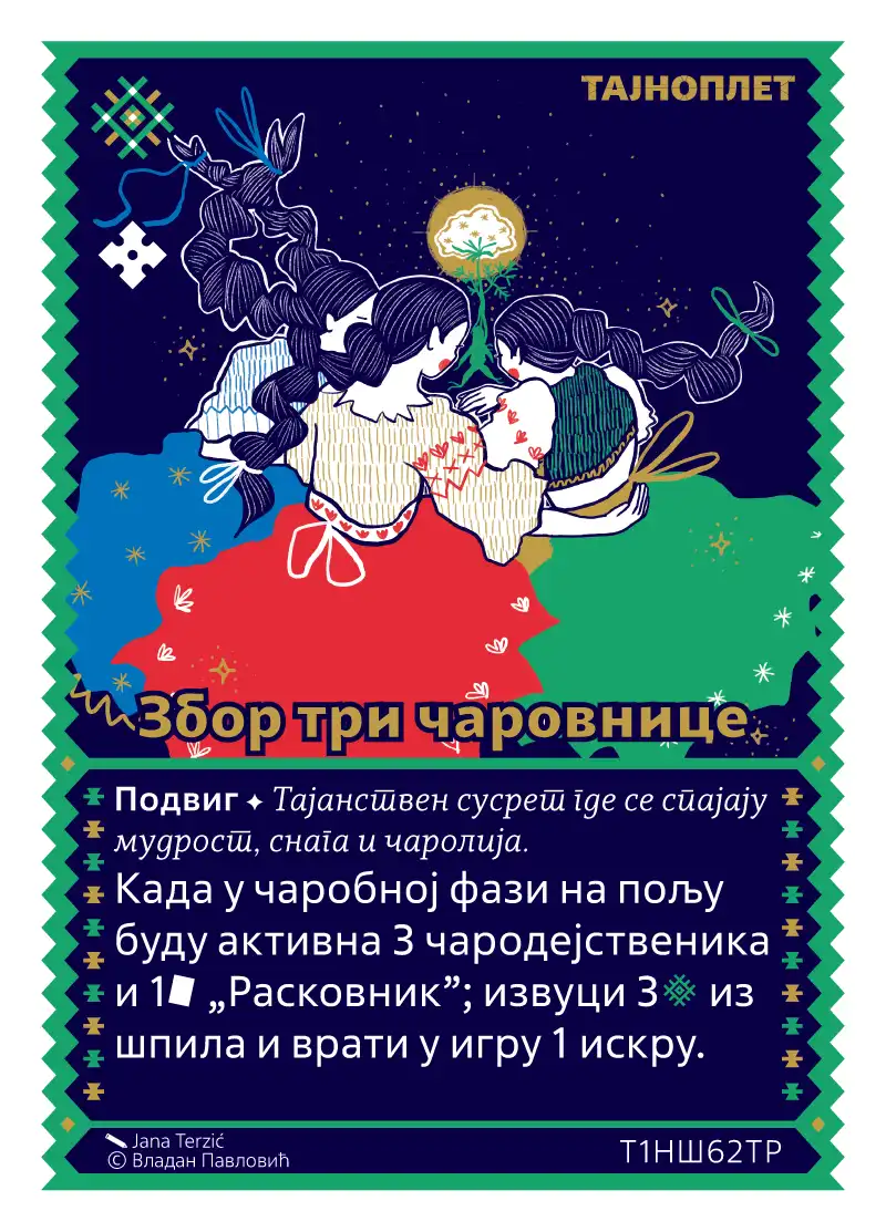 Када у чаробној фази на пољу буду активна 3 чародејственика и 1 карта „Расковник”; извуци 3 чаробне карте из шпила и врати у игру 1 искру.